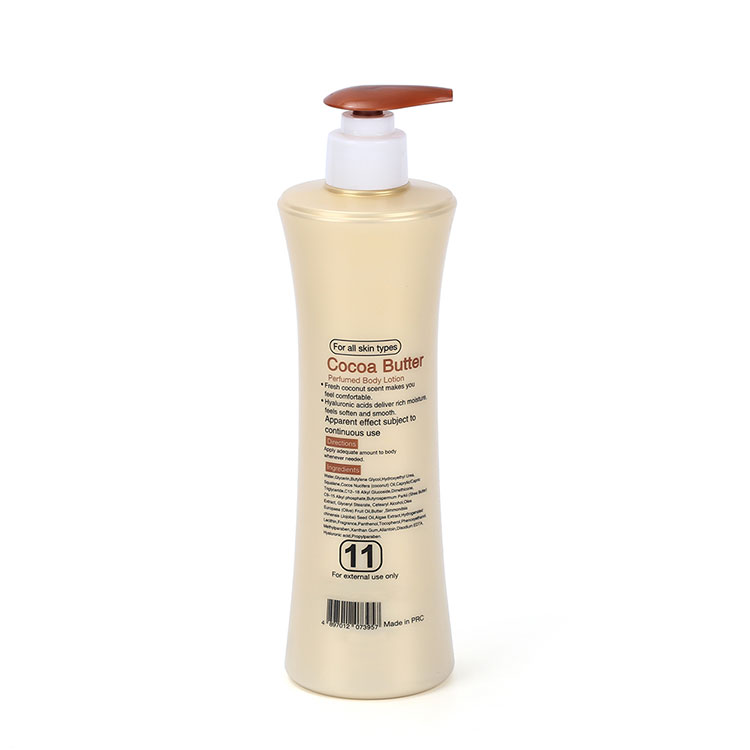 Лосионот со какао путер применува посебна нега на суви, фини линии или лабави области како што се вратот, лактите, колената итн., за да ја подобри текстурата и еластичноста на кожата.